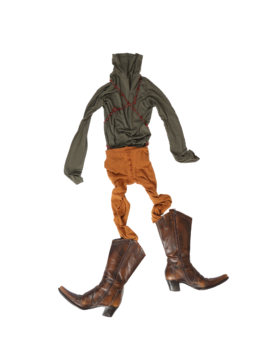 De ma tenue essentielle, j’ai extrapolé chaque élèment pour le retravailler plastiquement, explorer sa matérialité . Chaque vêtement, accessoire est repassé par le prisme de l’écriture pour en retrouver sa caractéristique principale qui devient alors le maitre mot d’une sculture.